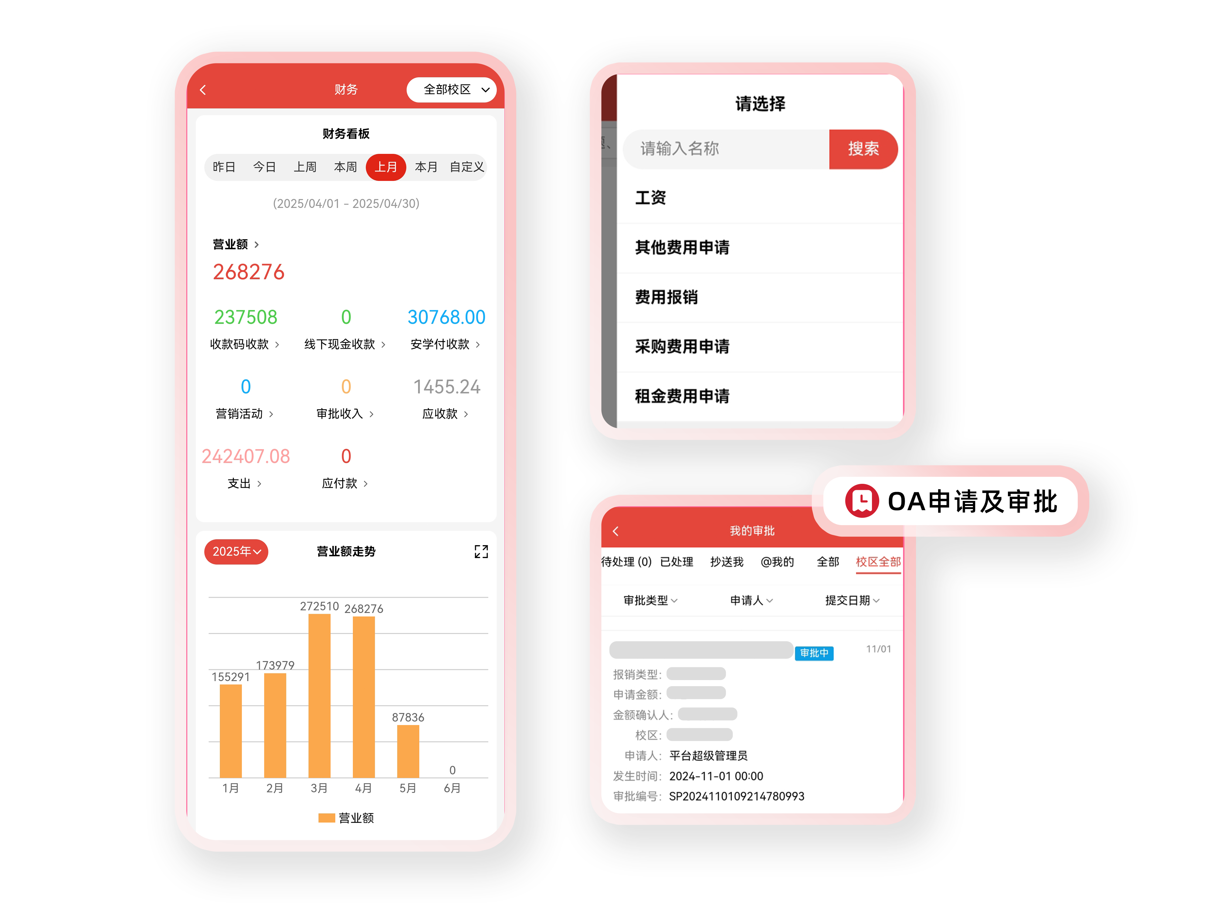 收支核算、学费管理、工资结算、报表生成全流程