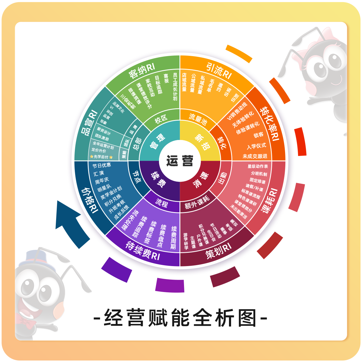 校连壹经营赋能项目都配备主副导师及强大后端支持团队,在校区经营发展的不同阶段,调用校连壹内部最优秀的精英团队来助力校区实现稳健经营,逐步发展为地方头部品牌。