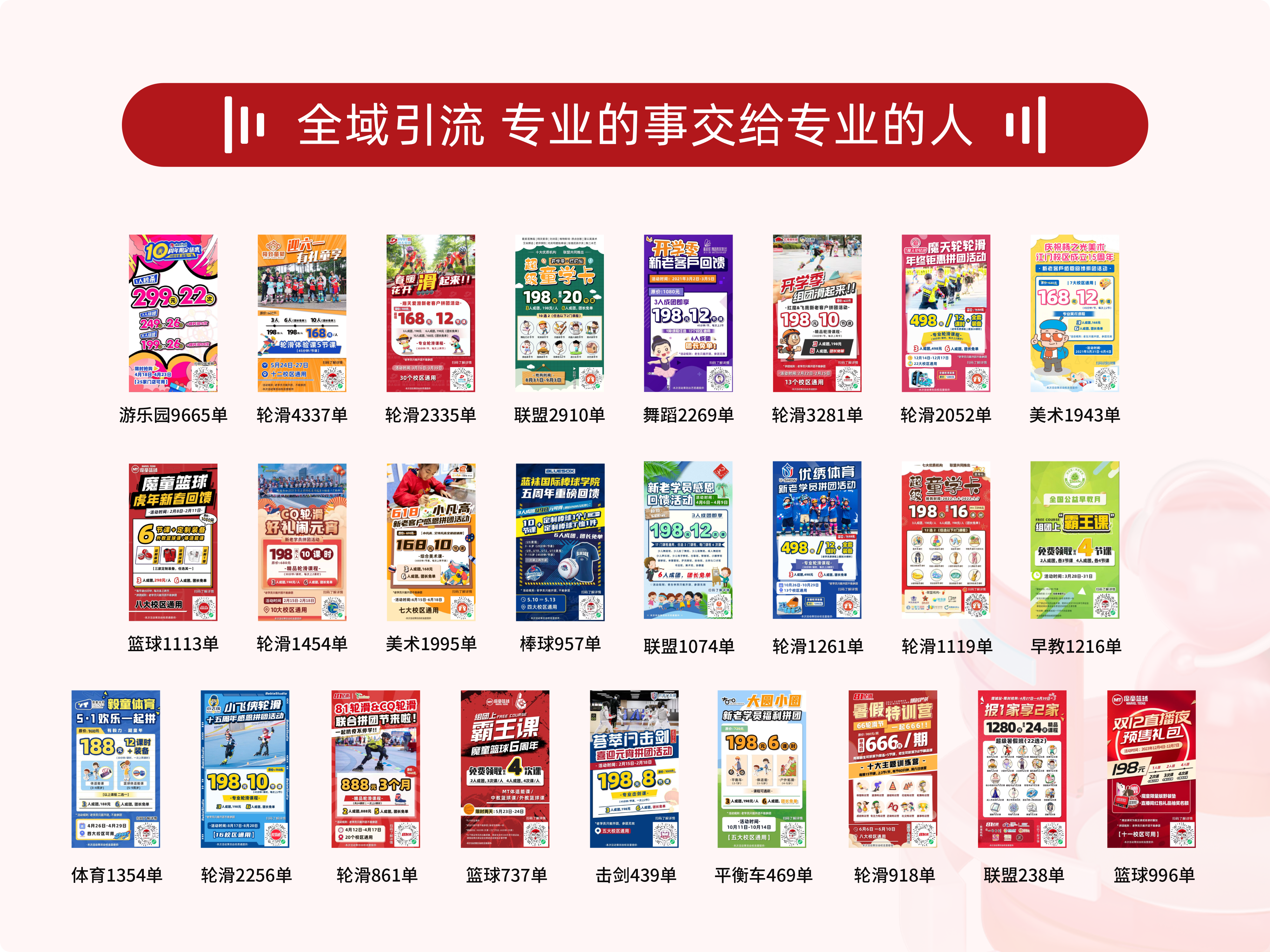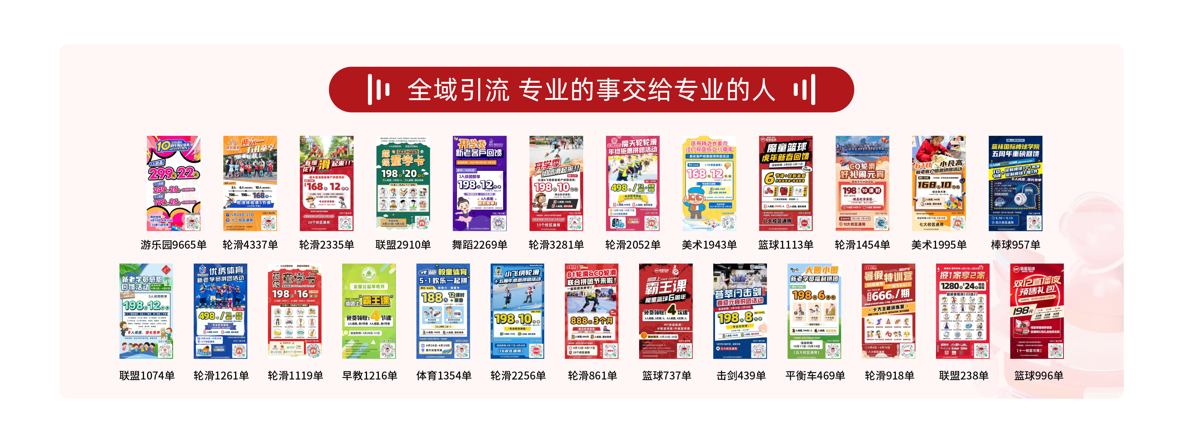 校连壹引流赋能活动帮助机构轻松解决:专属方案定制、私域流量爆破、员工技能培训、团队狼性操练、会员服务升温、品牌宣传推广。