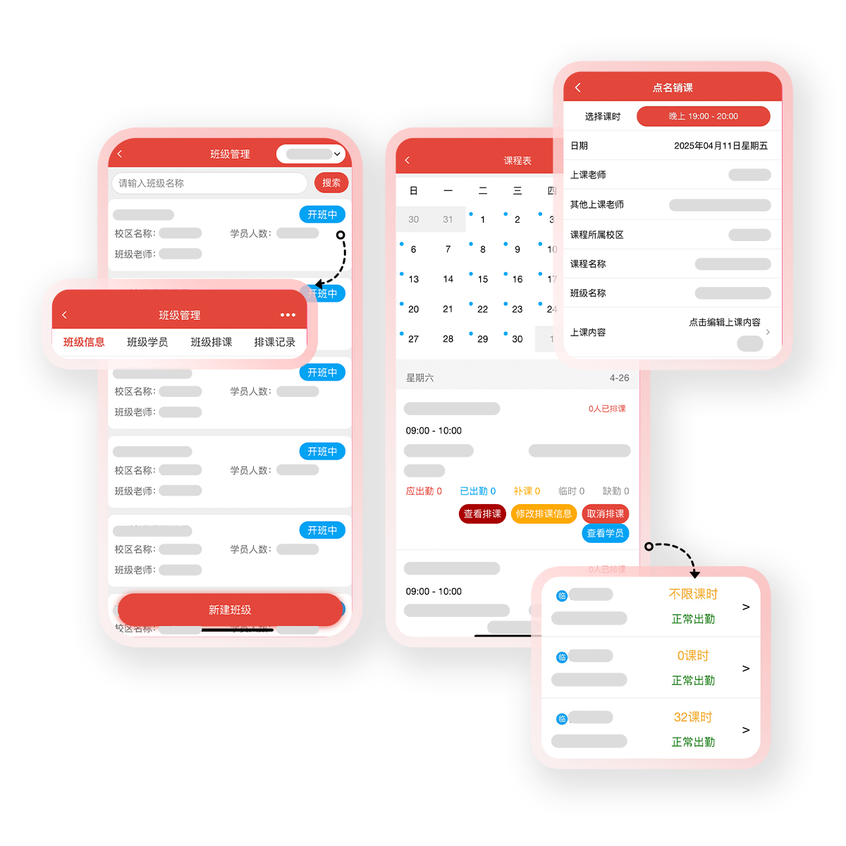 课程统筹、排课调课、学员管理、考勤分析一站式覆盖