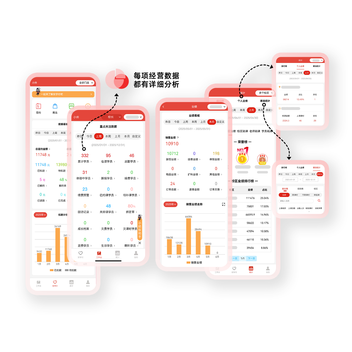 数据看板实时展示销售、教务、财务等关键指标